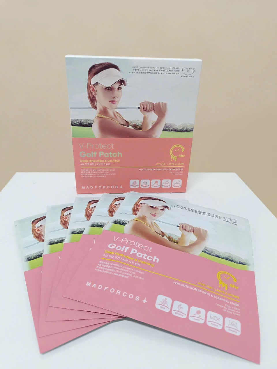 - Lớp Hydrogel lành tính vì thế mà các Golfers có thể sử dụng mặt nạ golf V-Protect Cool Golf Patch bên trên lớp trang điểm.