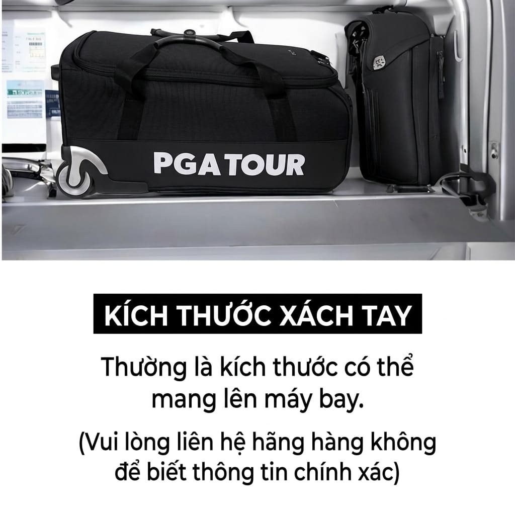 Vali PGA Tour được thiết kế theo kích thước có thể mang lên máy bay, giúp bạn tiết kiệm thời gian check-in và linh hoạt hơn khi di chuyển.