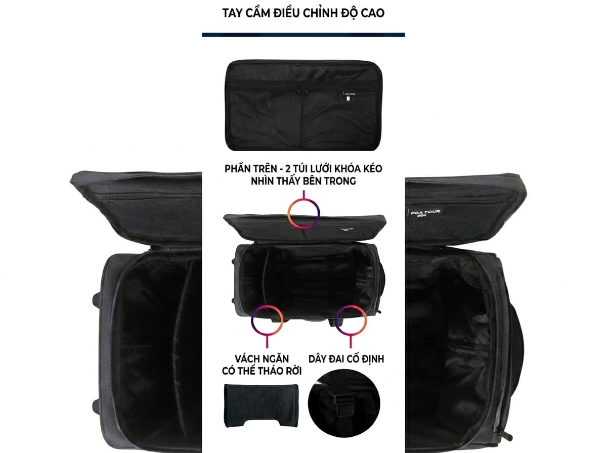 Không chỉ là chiếc vali kéo, quý khách hoàn toàn có thể xách vali như một chiếc boston với thiết kế 2 dây đeo 2 bên. Phù hợp với nhiều phong cách sử dụng khác nhau.