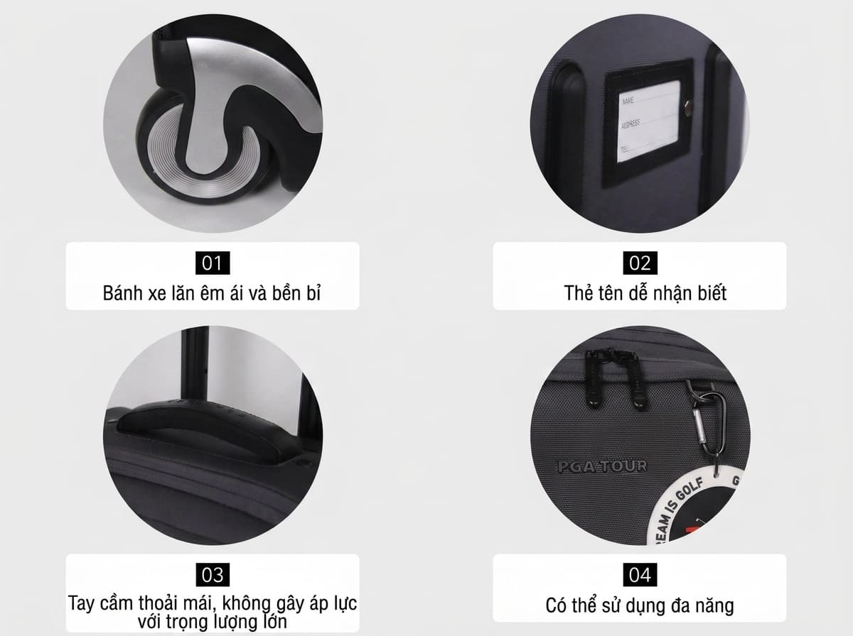 Sản phẩm có nhiều ngăn chứa đồ và phụ kiện cùng kích thước rộng rãi đảm bảo golfer có thể mang theo đủ đồ cho mọi vòng golf hoặc các chuyến du lịch tour golf nhiều ngày.
